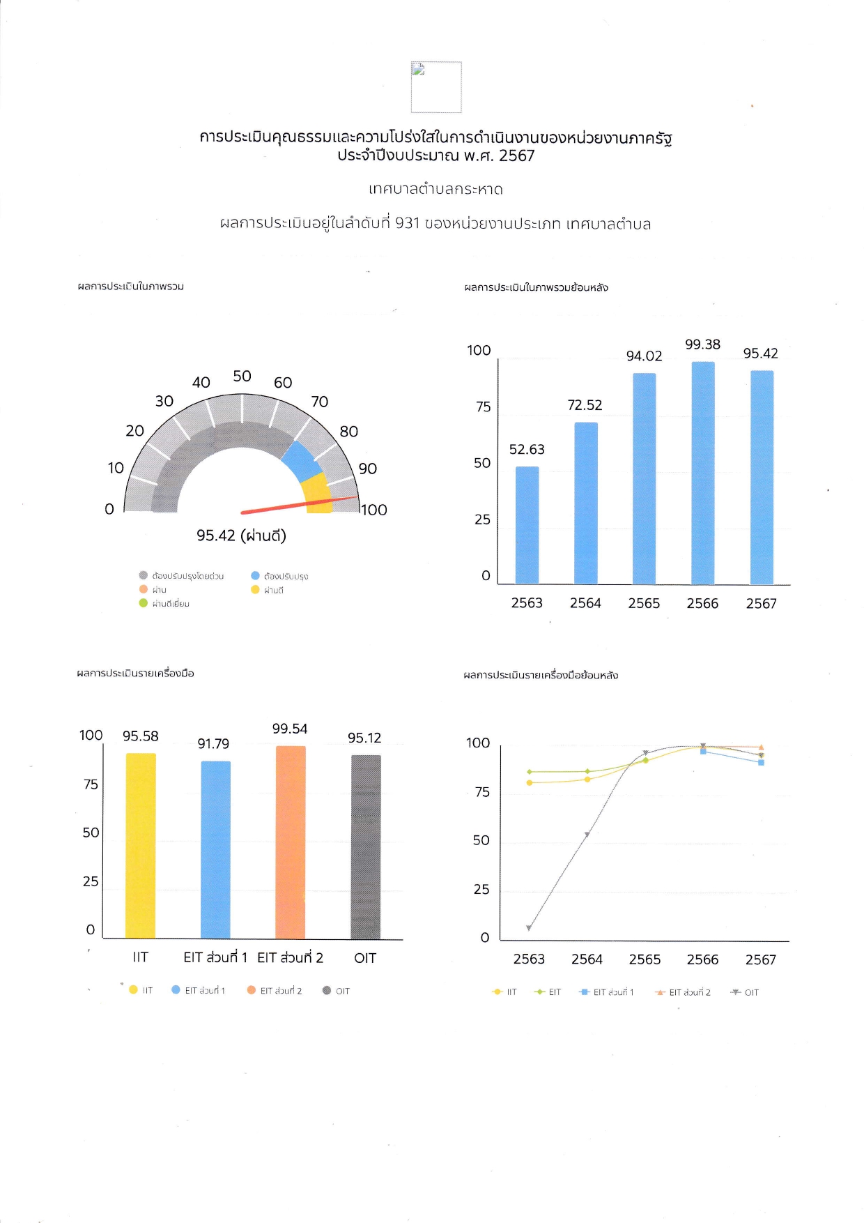 การประเมินคุณธรรมและความโปร่งใสในการดำเนินงานของหน่วยงานภาครัฐ ประจำปีงบประมาณ พ.ศ.2567 เทศบาลตำบลกระหาดมีผลการประเมินอยู่ในลำดับที่ 931 ของหน่วยงานประเภท เทศบาลตำบล