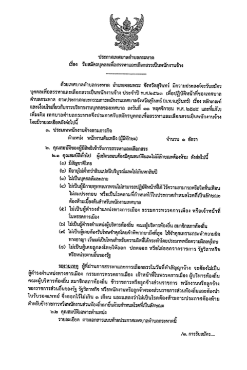 ประกาศเทศบาลตำบลกระหาด เรื่อง รับสมัครบุคคลเพื่อสรรหาและเลือกสรรเป็นพนักงานจ้าง
